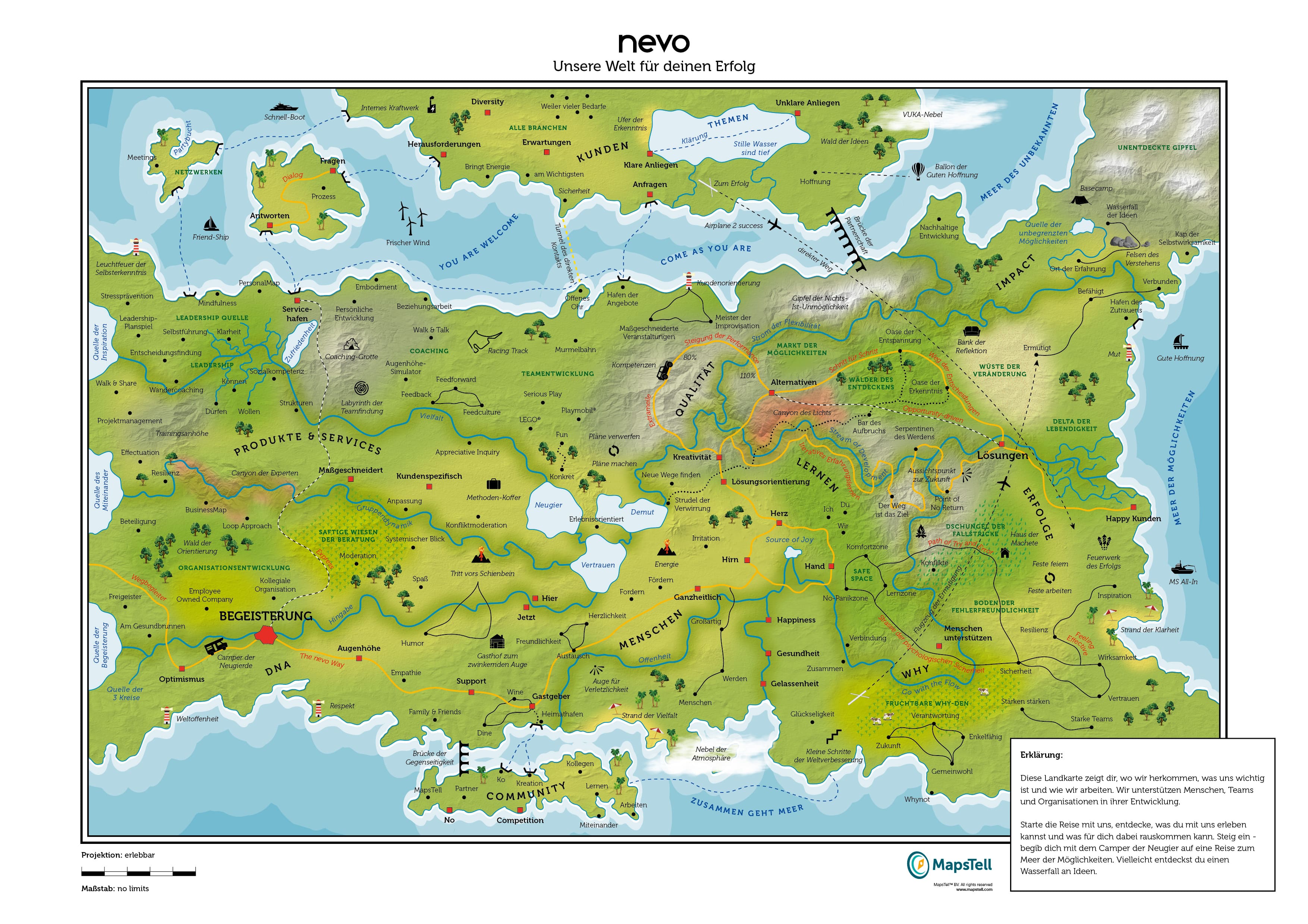 Das ist unsere BusinessMap. Schau dich um, lerne uns kennen! Schnapp dir den „Camper der Neugier“, fahr zur „Oase der Erkenntnis“ und stelle fest, wohin „The nevo Way“ führt…